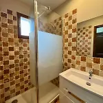 Diese 20 m^2 großen Apartments bietet eine Terrasse und Annehmlichkeiten wie eine Klimaanlage. Dieses Apartment bietet den Gästen einen Haartrockner und Badelaken im Badezimmer. Außerdem gibt es hier eine begehbare Dusche und eine getrennte Toilette.